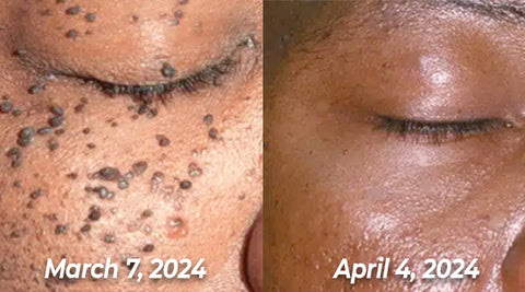 "I've been using this spray for a few weeks now, specifically for skin tags around my eye. I am genuinely impressed with the results! After just a few weeks, the skin tags around my eye have reduced, and there are no marks left from the skin tags."