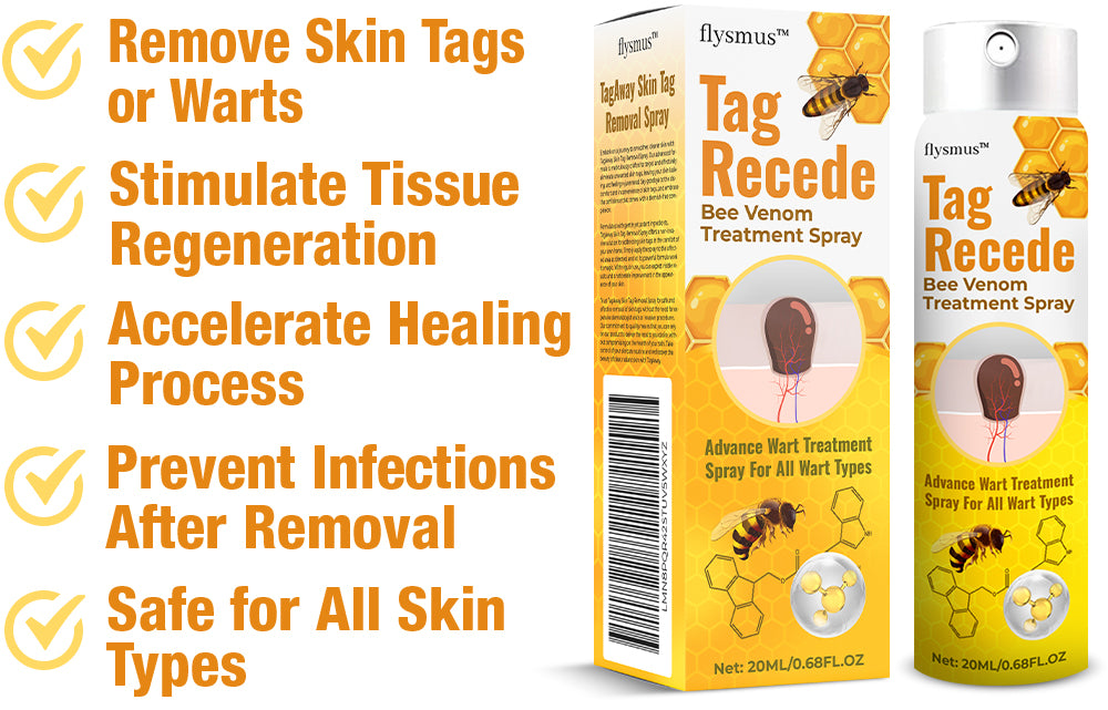 The TagRecede Treatment Spray is the solution harness the potent properties of bee venom to effectively target various skin imperfections, including skin tags, moles, warts, and spots. Infused with active compounds extracted from bee venom, this advanced formula to break down and gently removing unwanted growths.